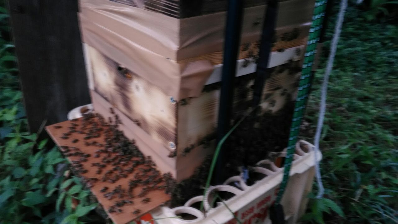 昨年の夏の暑さで「巣落ち」し、1群が消滅しました。残った1群も秋の台風で巣箱が倒れました。