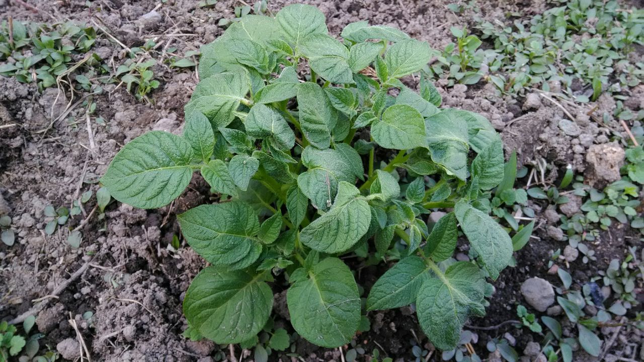 今日のジャガイモの様子です。そこそろ「芽かき」をする時期かなと思います。
