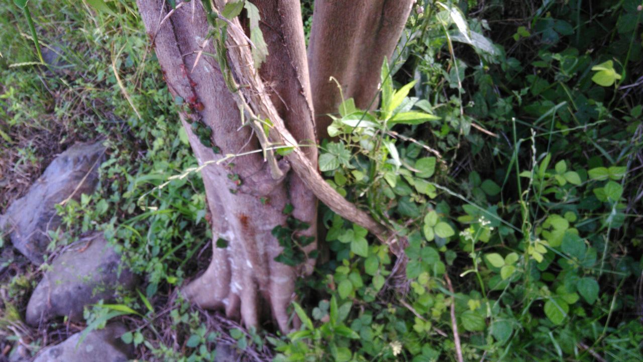 実は、「ノウゼンカズラ」を植えた場所は、「ユズ」の木の根元です。