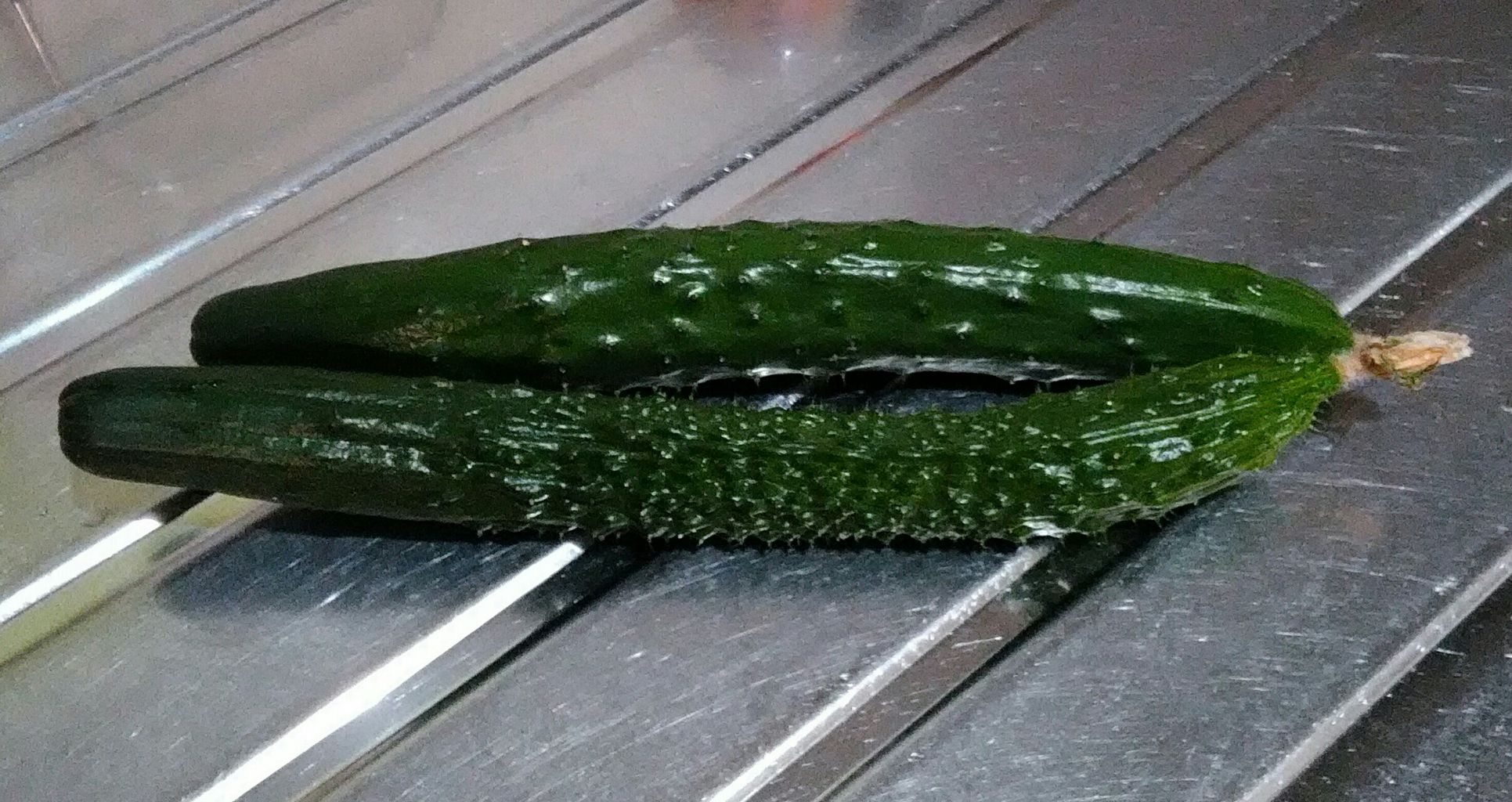 先日、「 キュウリのカッパ漬け 」 (レシピあり) で、「キュウリ」のイボイボが痛くて素手で触れないという記事をUPしましたが、今日、収穫した「キュウリ」を見ると、イボイボの多いのと少ないのと2種類ありました。