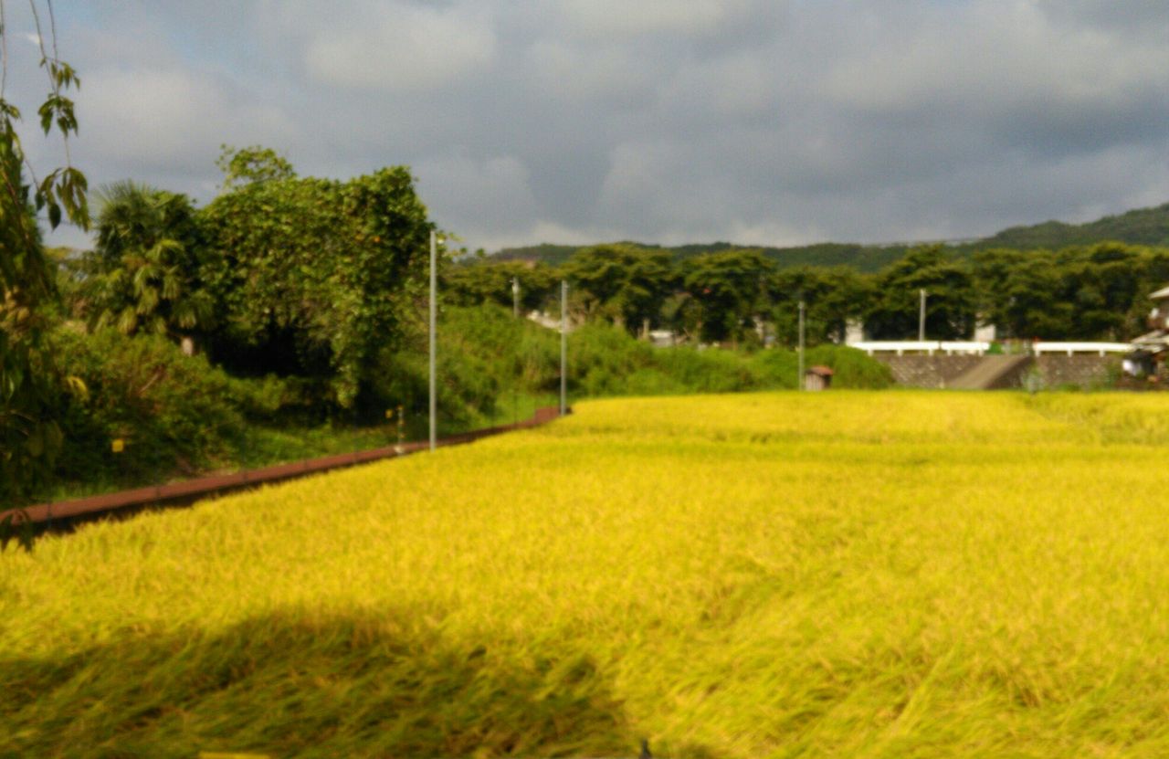果樹園の西にある田んぼ(他人の)です。「きぬひかり」という品種です。この地域は、4月に田植えをし、8月下旬から9月上旬に稲刈りをします。