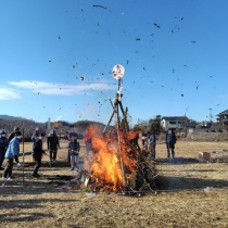 昨日は地区のとんど祭り(左義長)がありました。 正月の松飾りなどを持って、会場の田んぼに行きました。 100数十人の住民が集まっていました。 昆布茶で乾杯し、午前9時半に点火しました。 お餅の入ったぜんざい、焼き芋などが無料配布されました。 子どもには、綿 ...