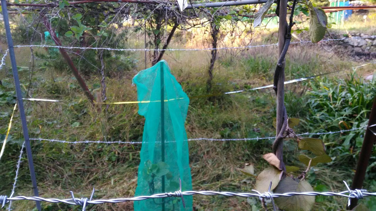 その後、ゴールドキウイがシカにやられないように、念のため有刺鉄線で囲みました。