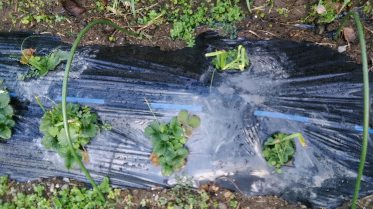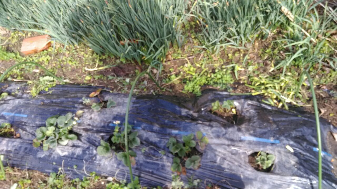 イチゴを抜かないように草引きをしました。