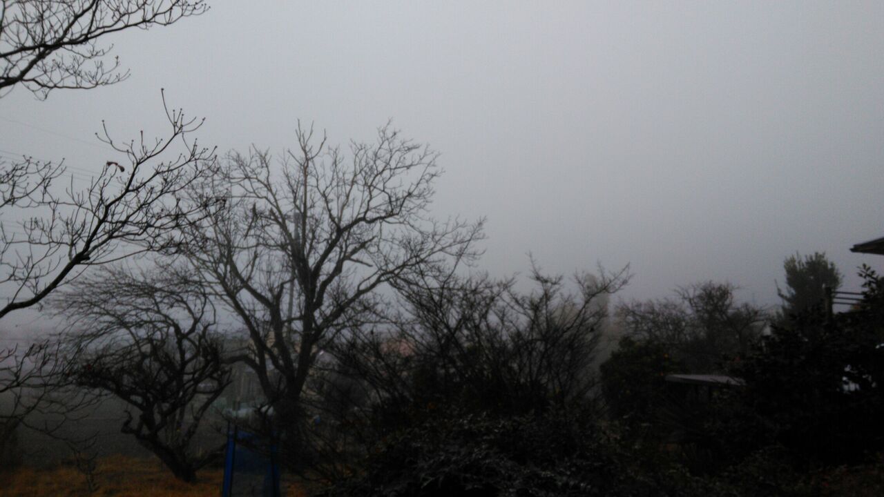 昨朝は濃霧でした。裏山が見えないほどでした。