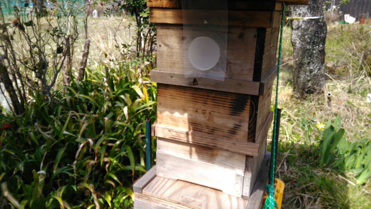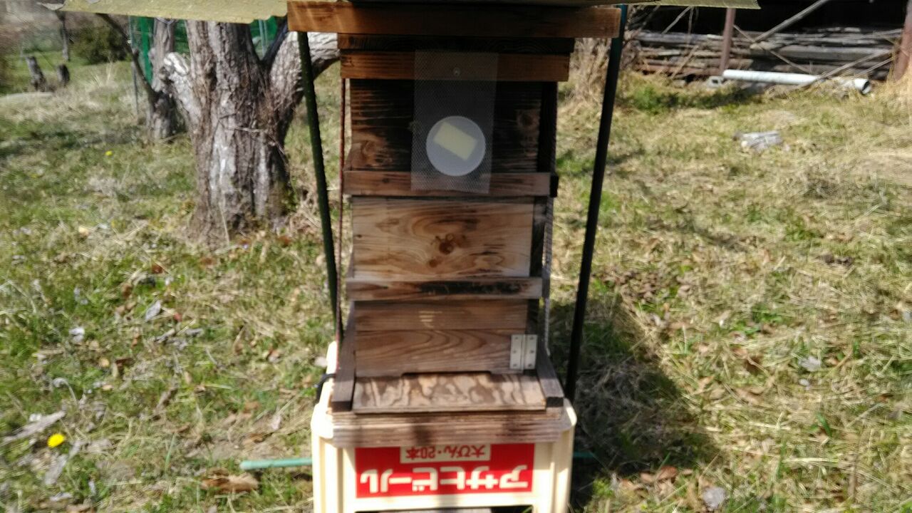 昨日、ニホンミツバチの誘引剤を設置しました。天気予報では当分の間、雨が続くようですが、ニホンミツバチは雨天でも行動します。