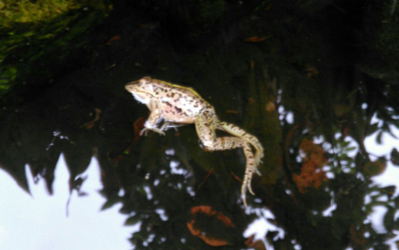 昨朝、ビオトープにカエルが浮かんでいました。