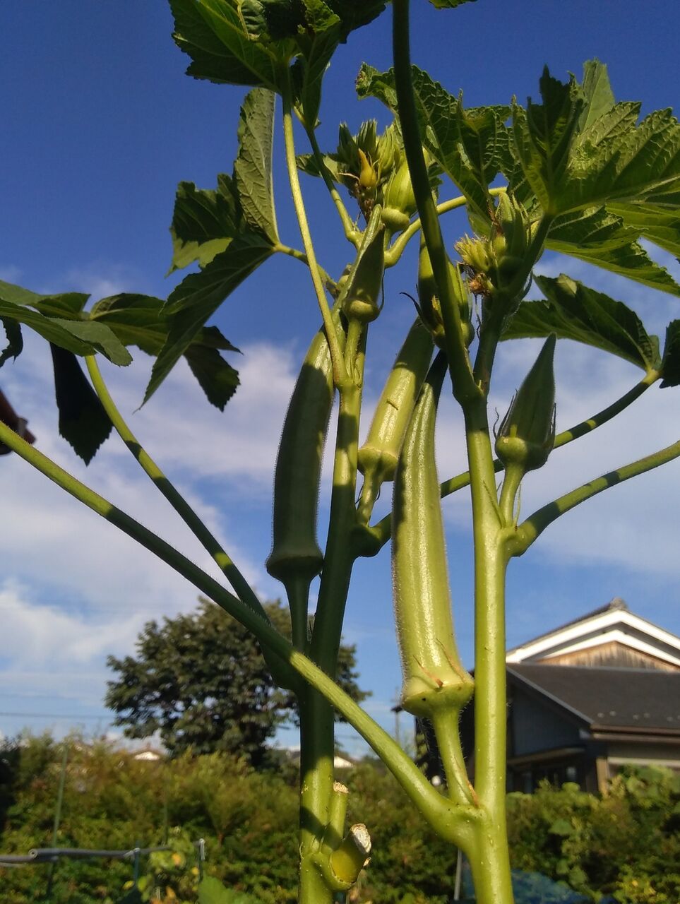 オクラの収穫を一日サボると食べられない大きさになっていました。