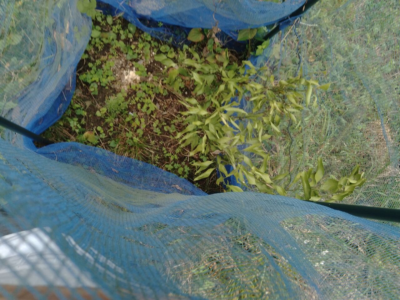 ミカンの木に元気がないので、ネットの中を覗いてみました。