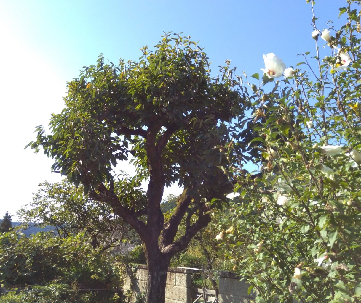 母屋の前の木に、2個だけ実があるのを見つけました。