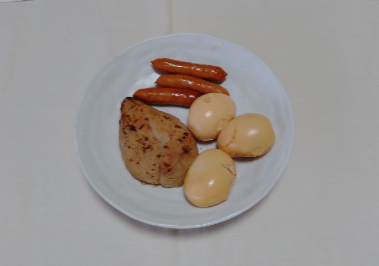今回は、卵、ウインナー、サラダチキン(炭火焼き)の3種類です。