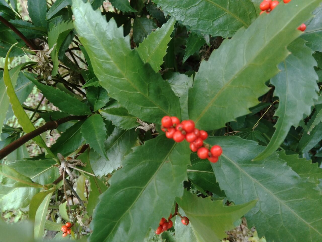 ビオトープ脇の千両です。
