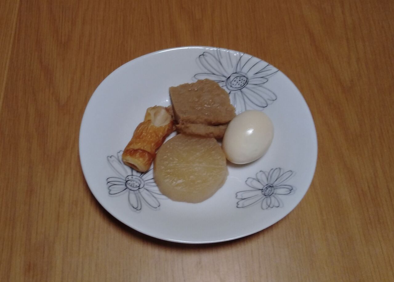 卵、大根、ちくわ、じゃこ天だけです。