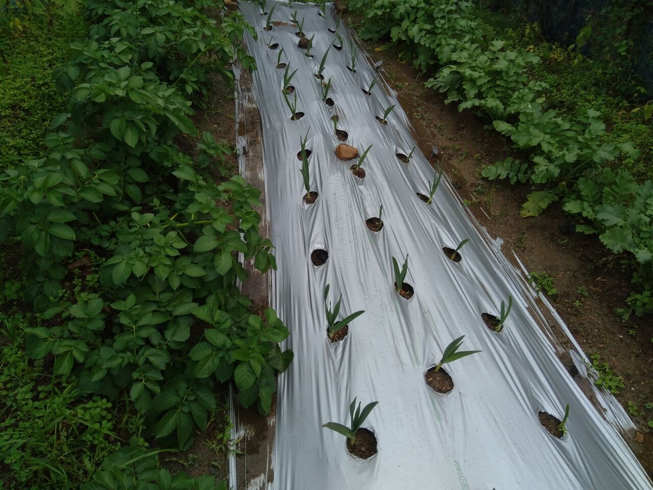 雨の中、畑を見に行きました。