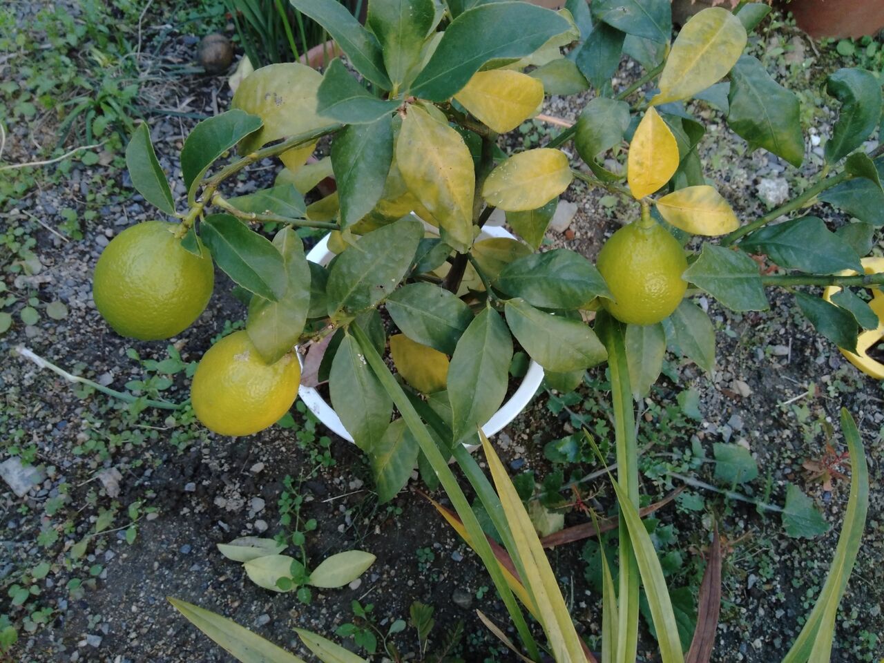 レモンも少し色づいてきました。
