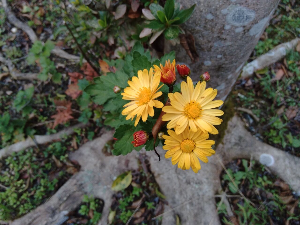 先日、紹介した、裏庭でけなげに咲いている小さな菊の花です。
