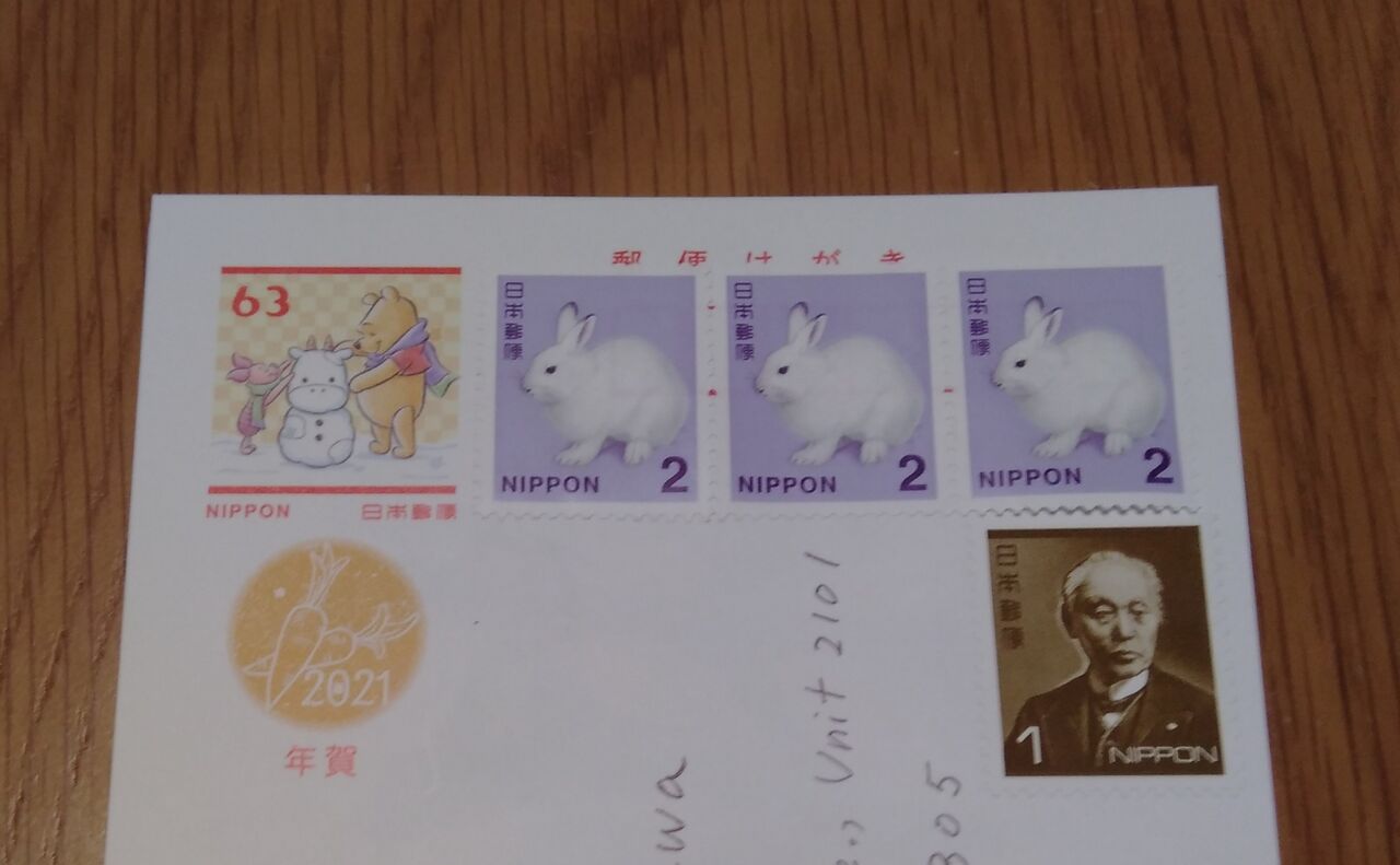 70円で外国に届くのは安いというか、町内宛ての63円と比べると複雑な気分です。
