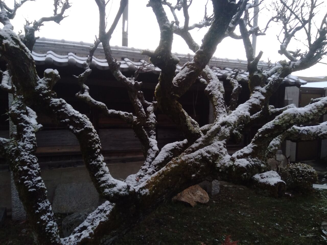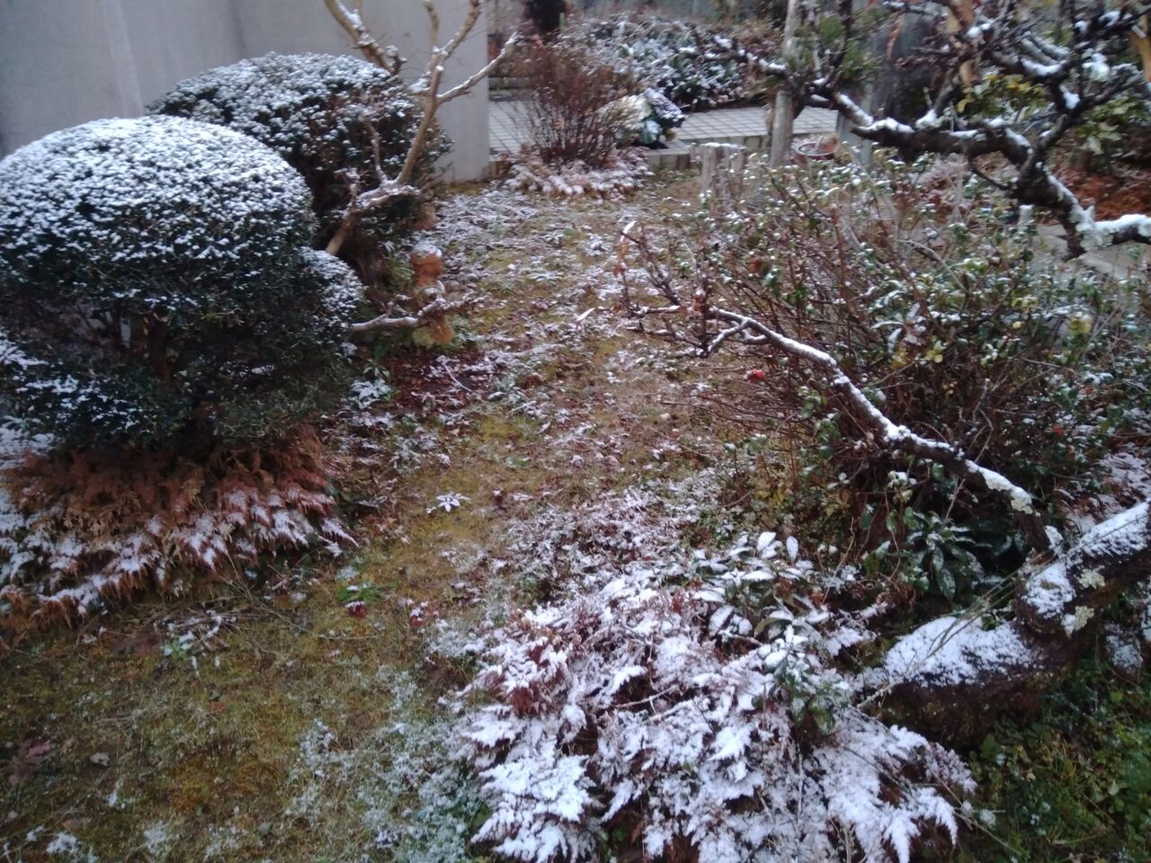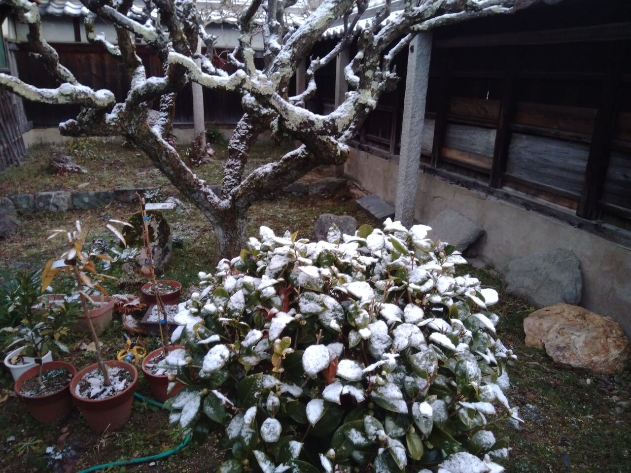 昨朝、外に出ると、うっすら雪が積もっていました。