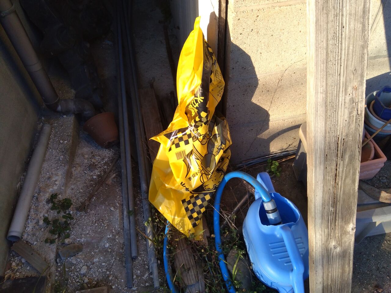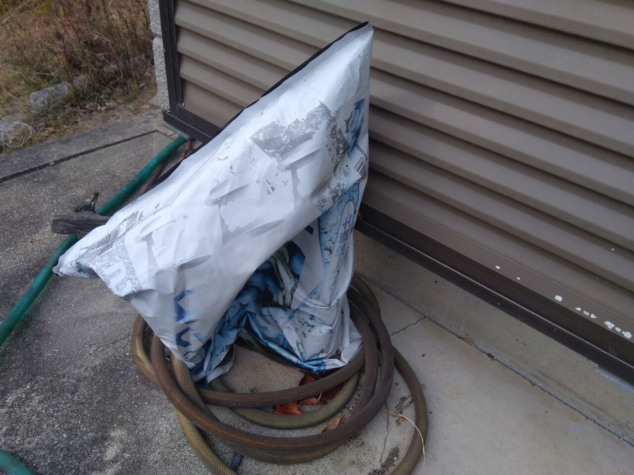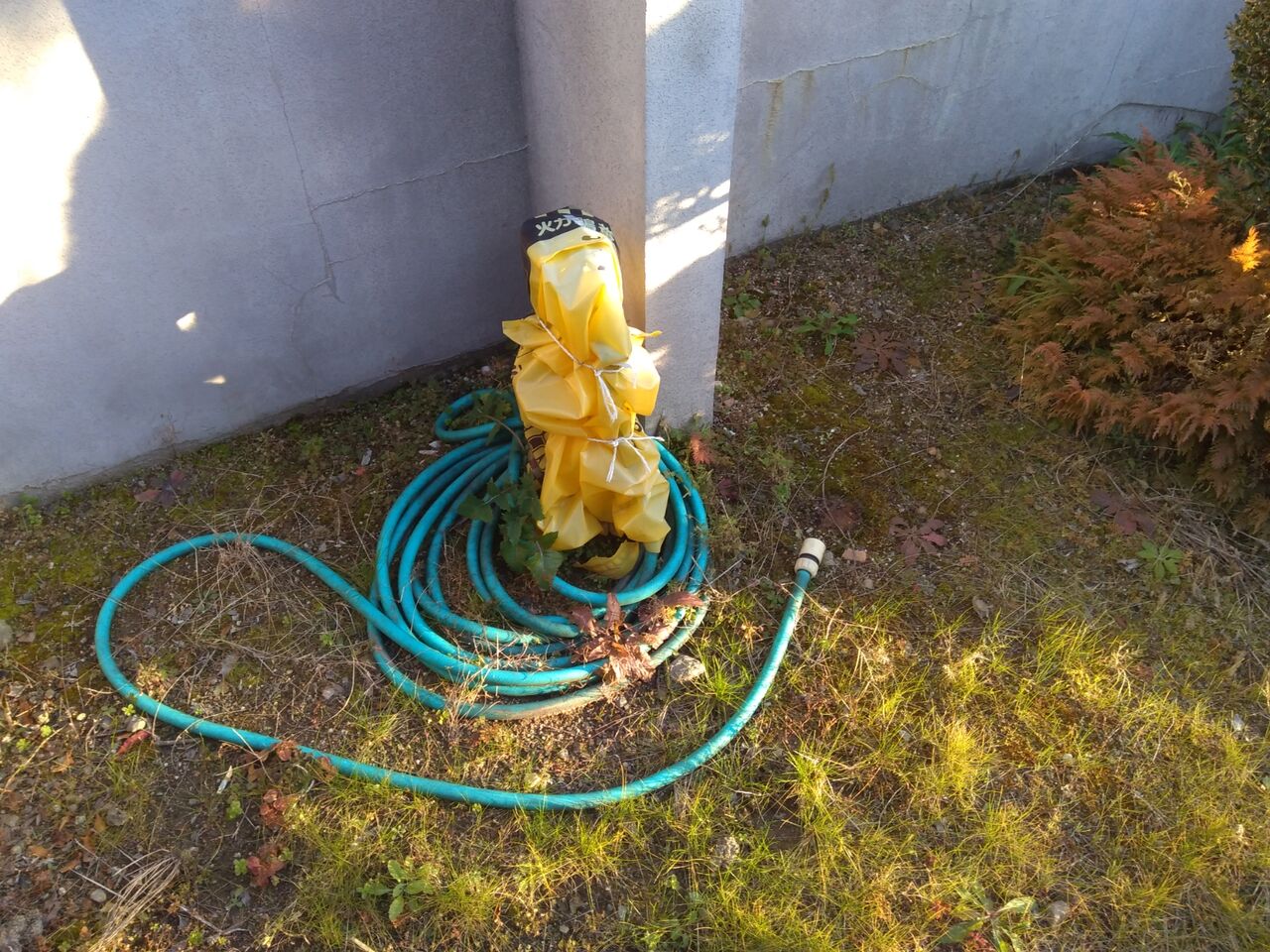 数年前に水道管が破裂したことがあり、昨日は水道管が破裂しないようにナイロン袋を被せました。