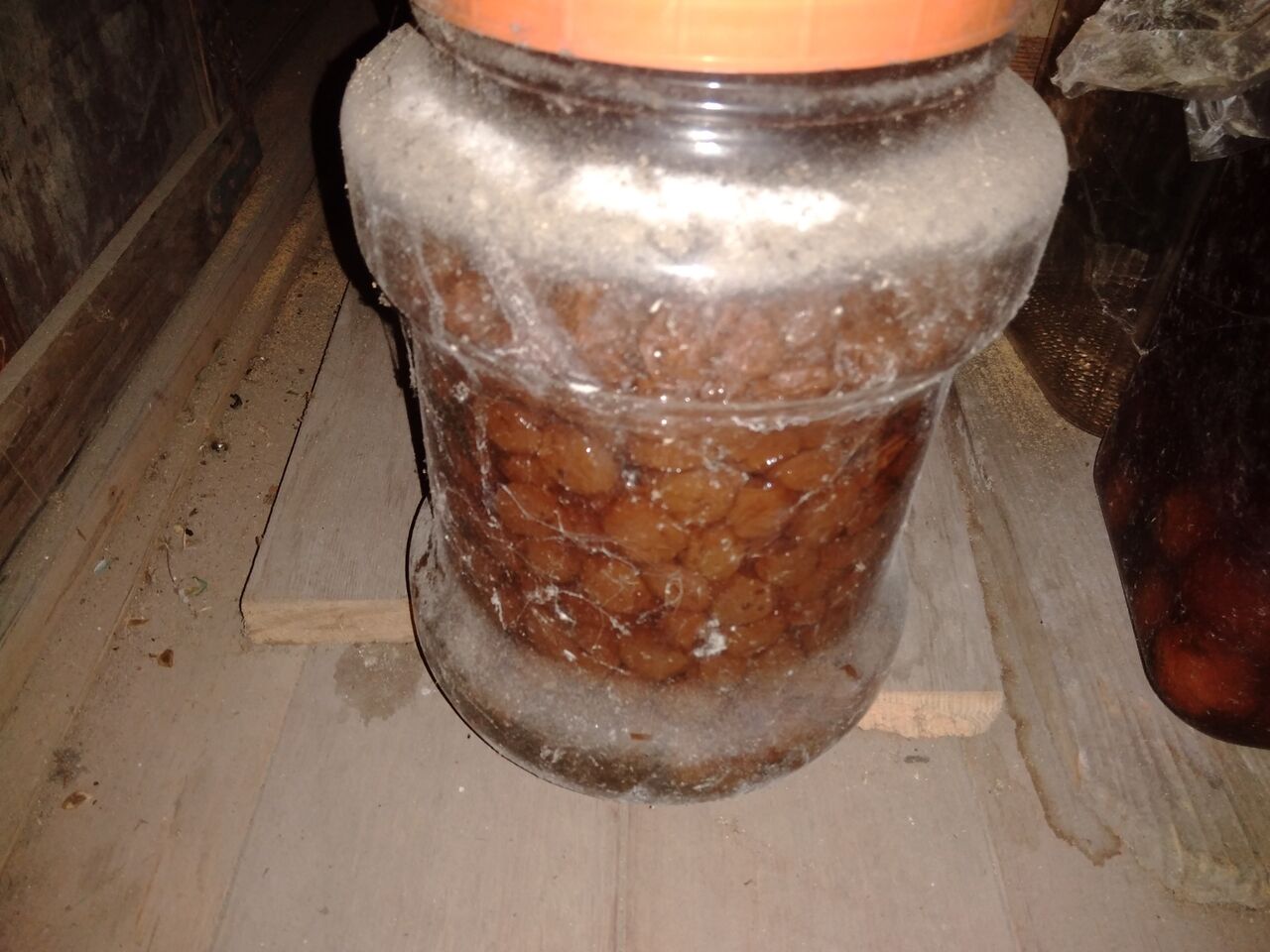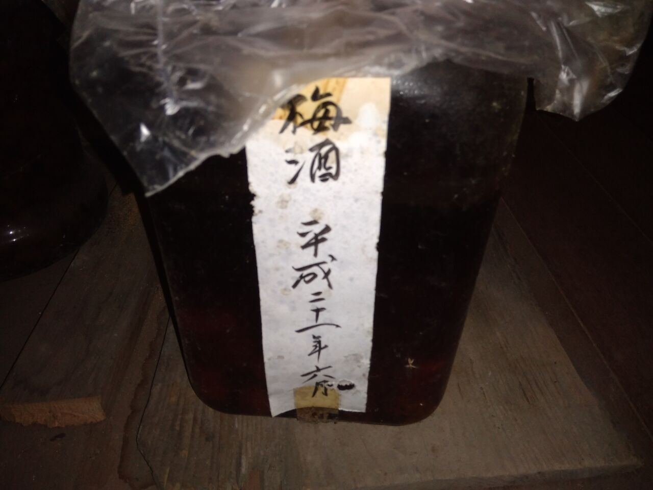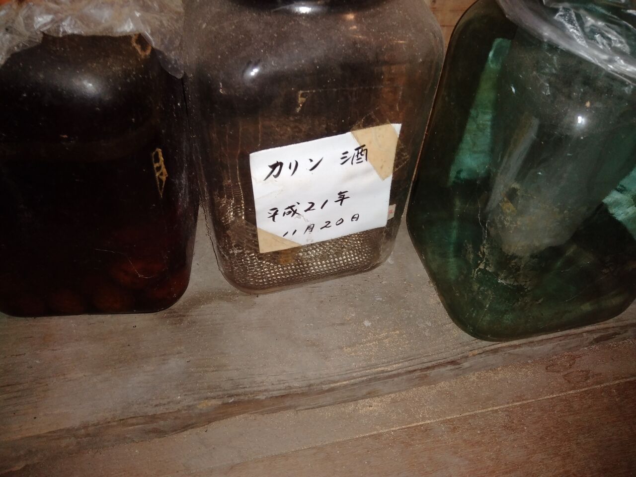 土蔵の中に、味付け海苔のガラス容器に入った果実酒と思われるものが10本ちょっとありました。