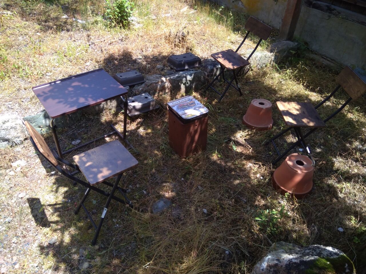 母屋の土間にある来客用の椅子とテーブルを持ってきました。