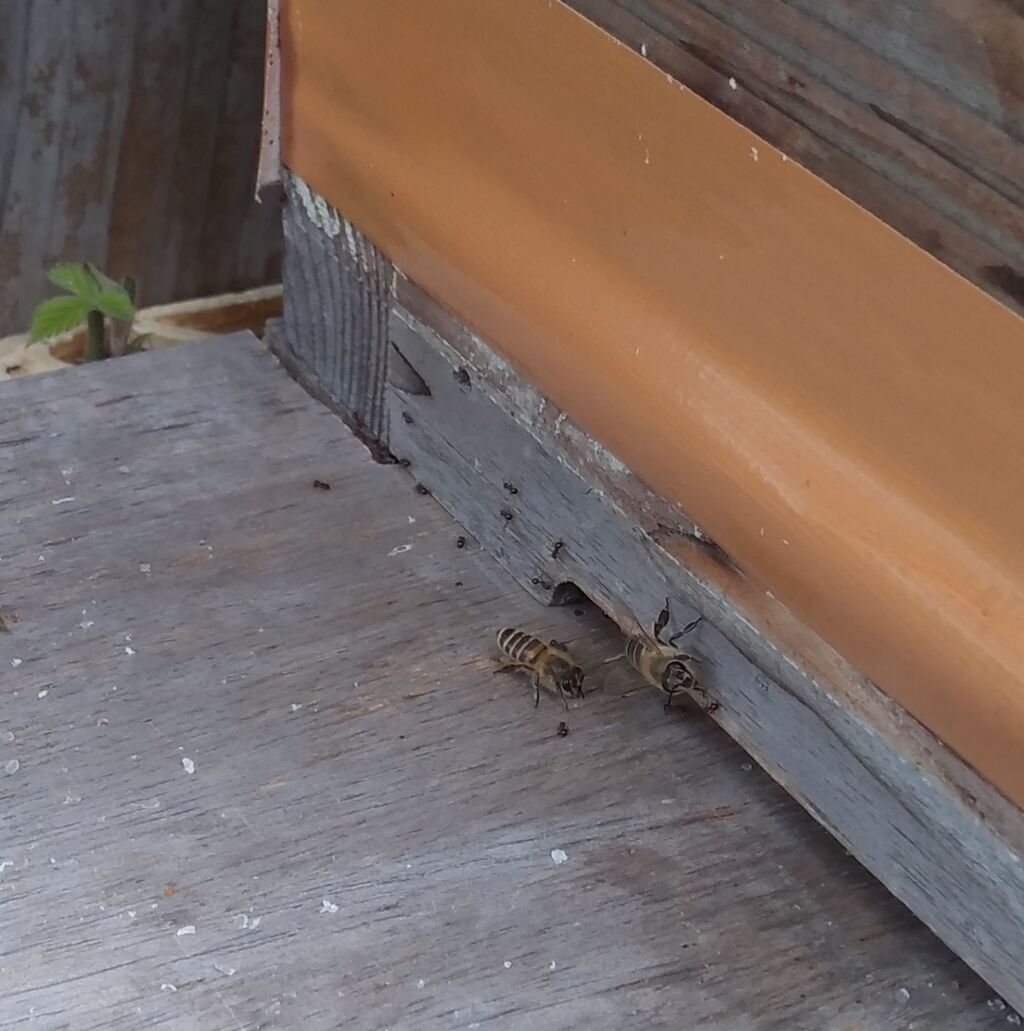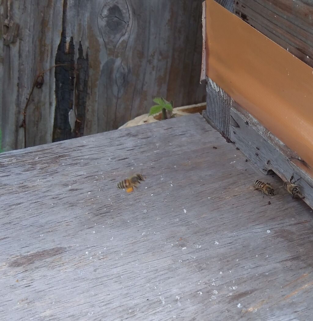帰ってきた働き蜂が、巣門が違っていて、戸惑っていました。
