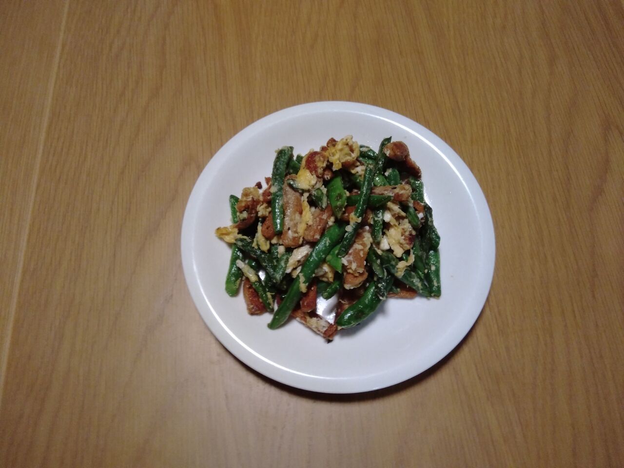 昨日、初めて「インゲンと油揚げの卵とじ」を作りました。