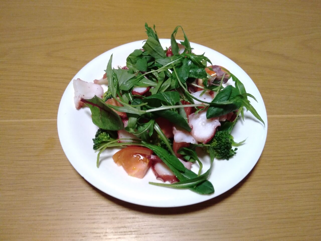 野菜、トマト、茹で蛸のスライスなど、適当です。