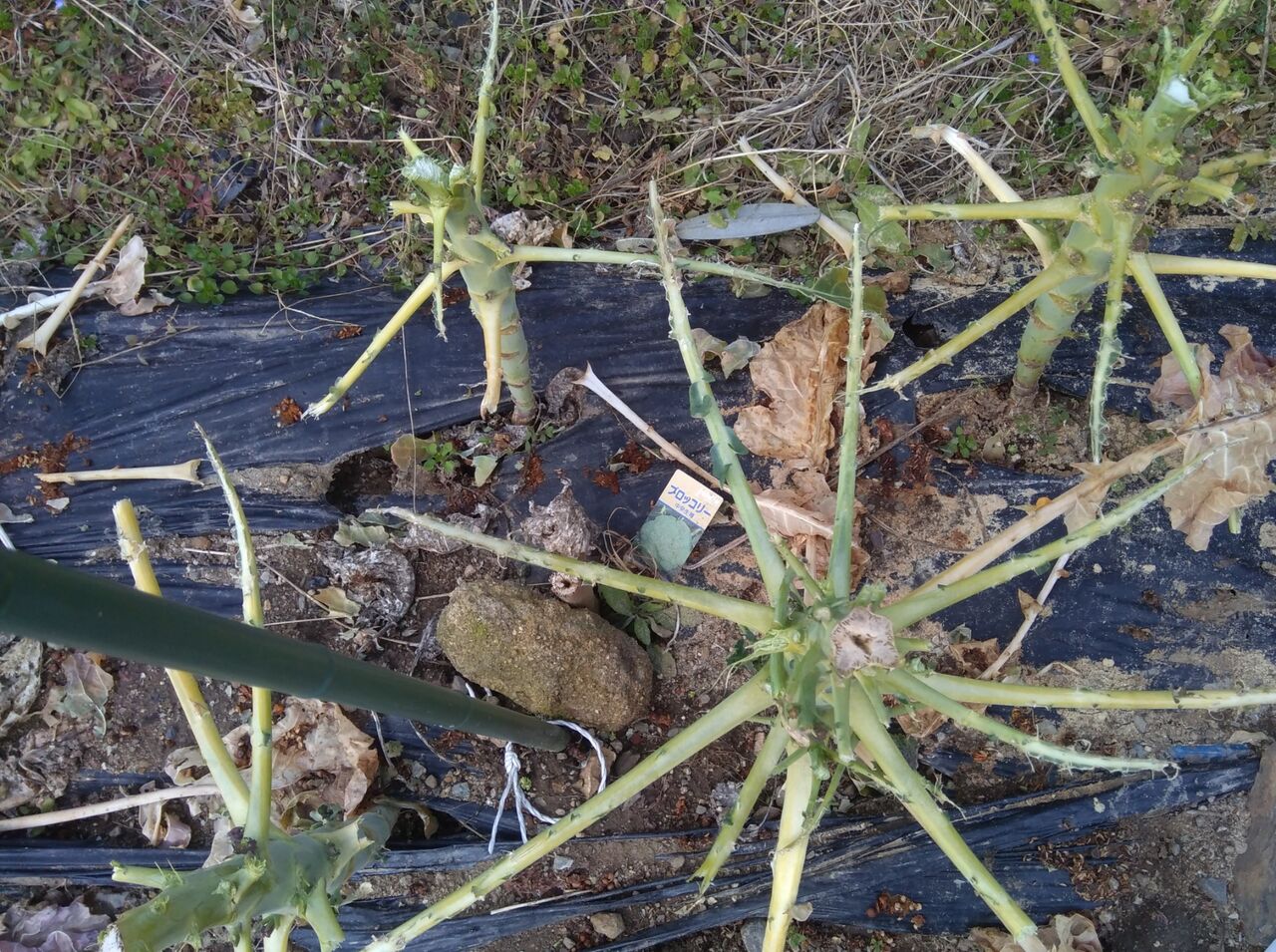 畑のブロッコリーですが、葉っぱだけでなく、脇芽までなくなっていました。