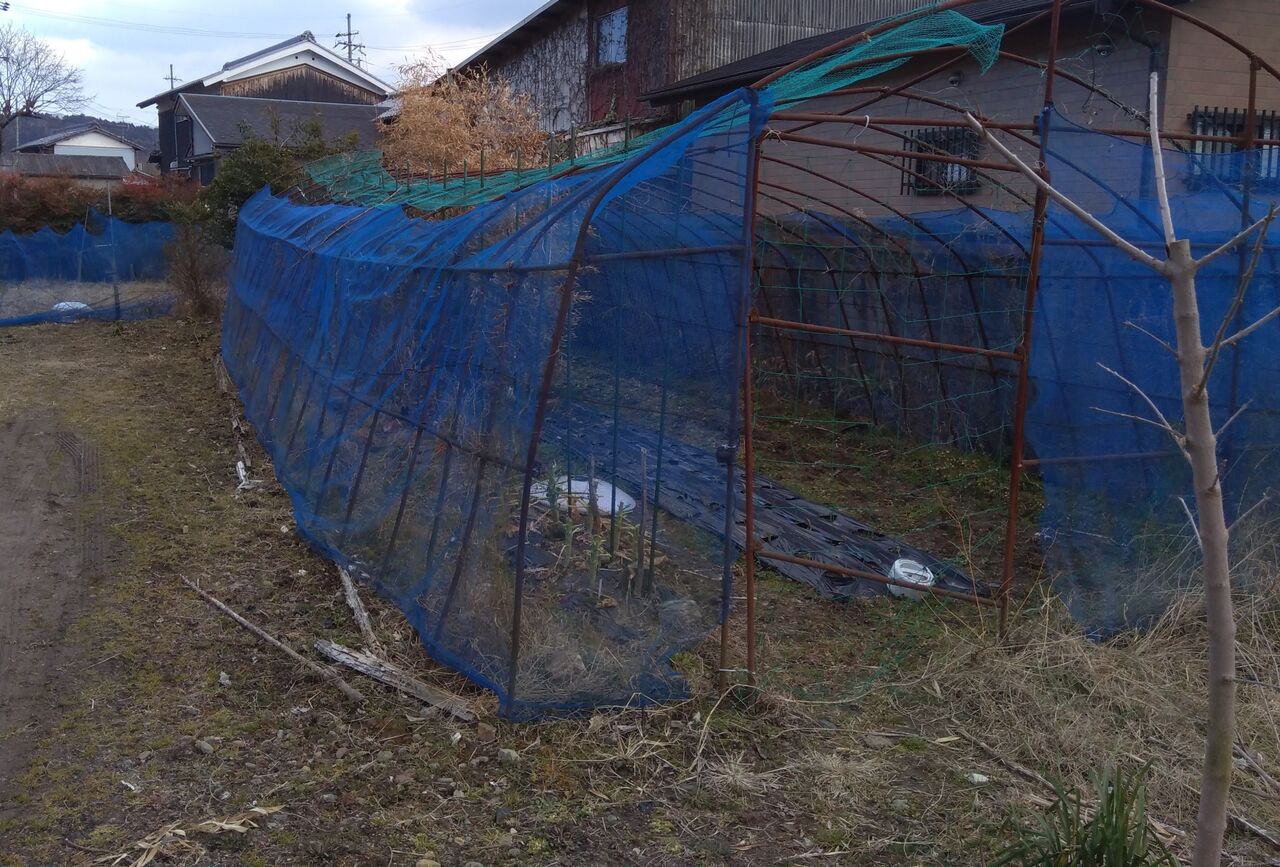 これからの春、夏野菜の栽培に備えて、天井部分にもネットを張ろうかと思います。