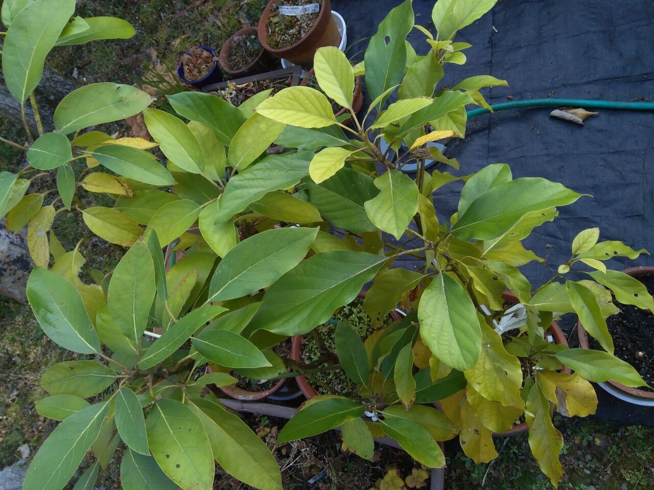 暖かくなったので、室内に置いていた鉢植えのアボカドを裏庭に出しました。