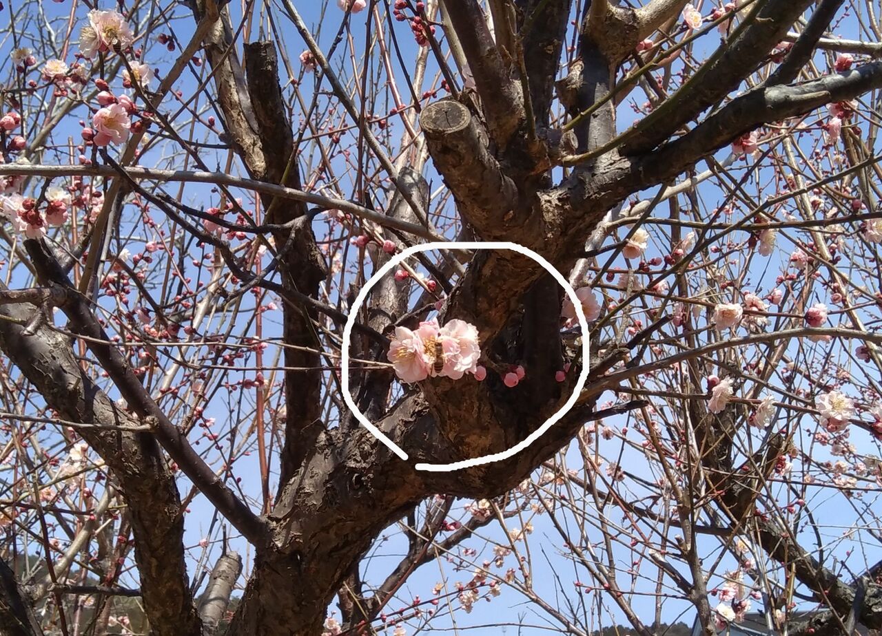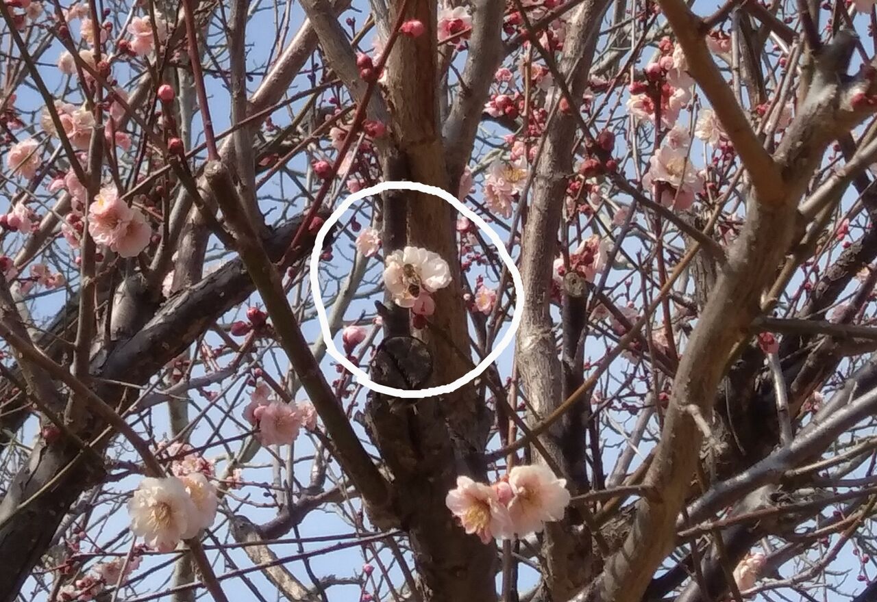 梅の花には、たくさんの蜂が集まってきていました。