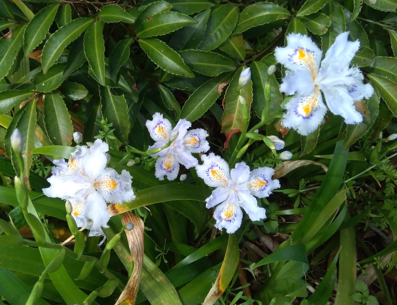 果樹園から母屋の前庭にかけてシャガの花が咲いてきました。