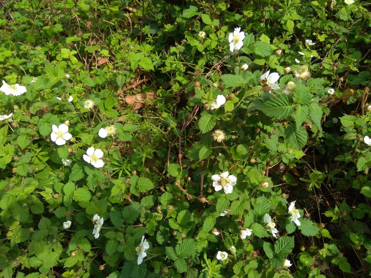 シャガの群生の隣に、草いちご(クサイチゴ)が群生しています。