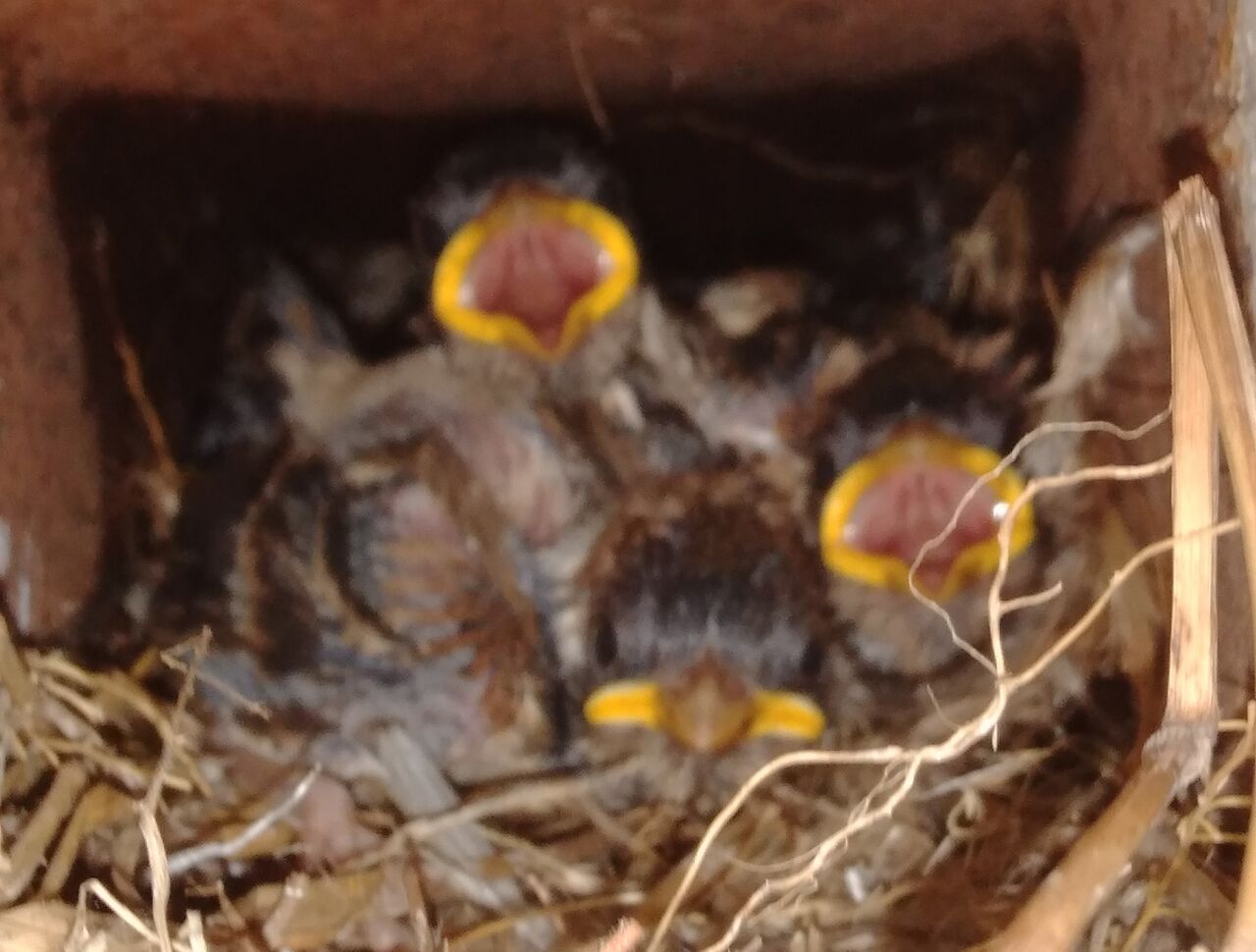 口を開けて餌を待っている雛、スマホを見ている雛、何羽いるのかは分かりません。