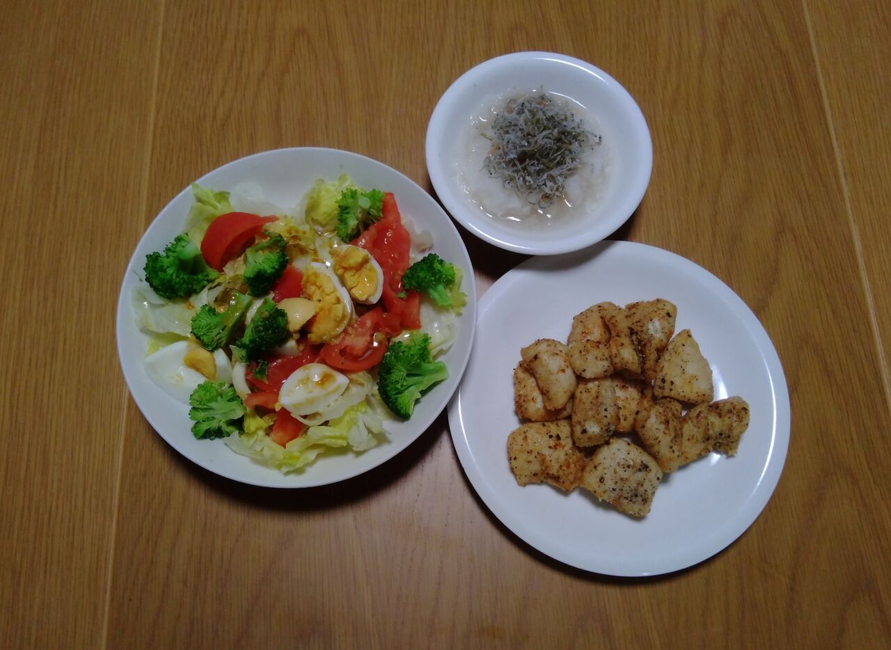 右下は、ササミに塩コショウして、片栗粉をつけて揚げたものです。