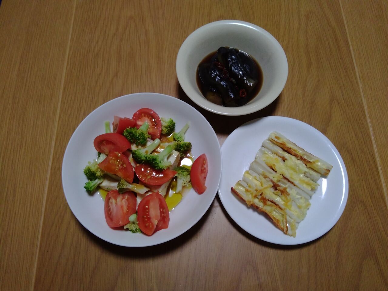右下は、竹輪を半分に切って、溝にマヨネーズを入れ、チーズをかけて、オーブントースターで焼きました。