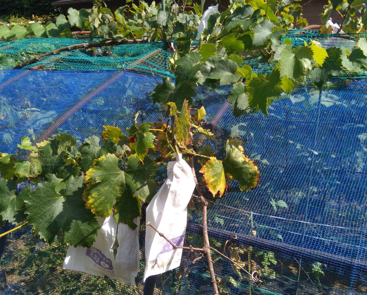 奥のほうには、少し赤茶色になっている粒があります。巨峰かな?