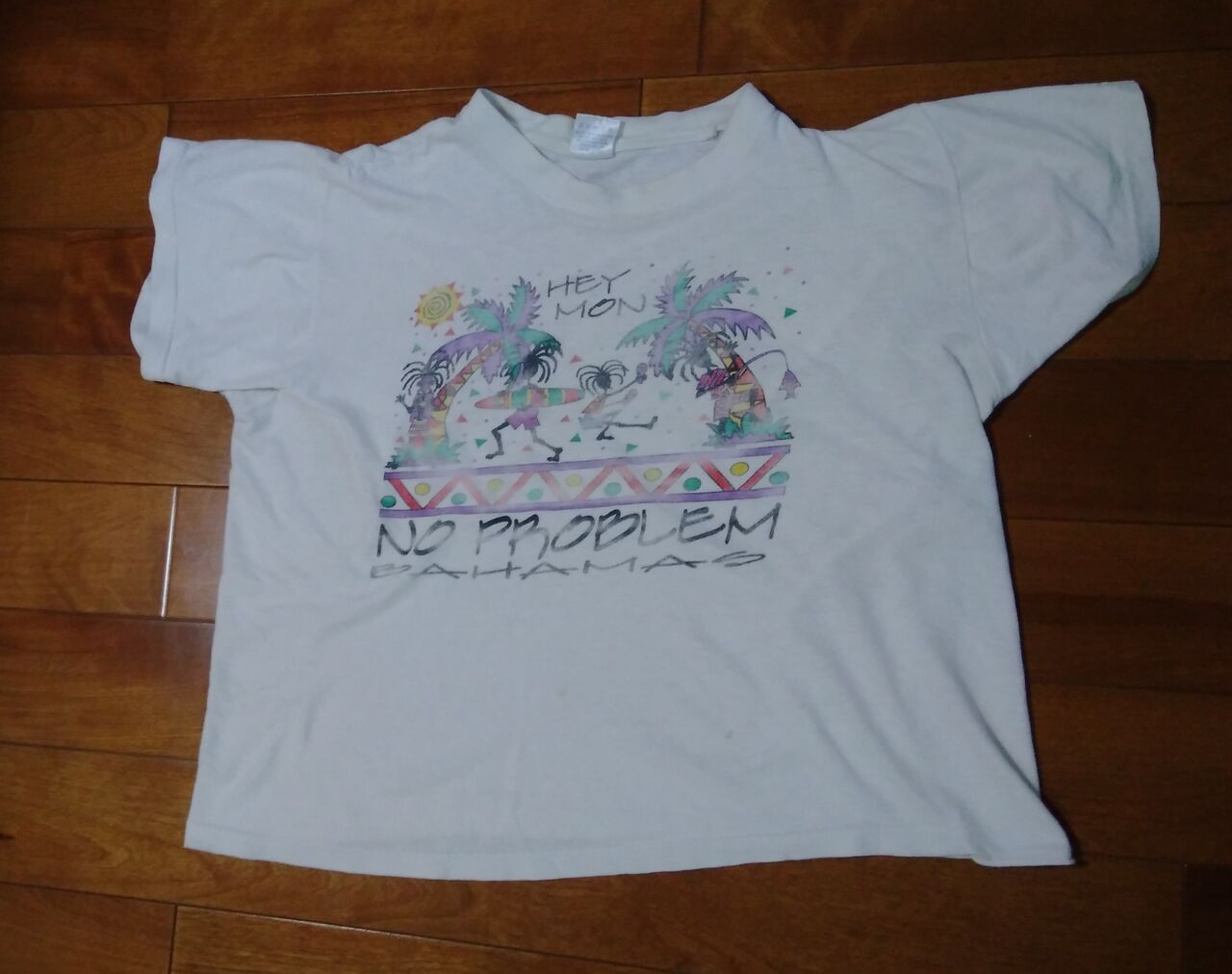 6月に廃棄したバハマのナッソーで買ったTシャツは色がはげ、生地もヨレヨレだったので、仕方がないと思いました。