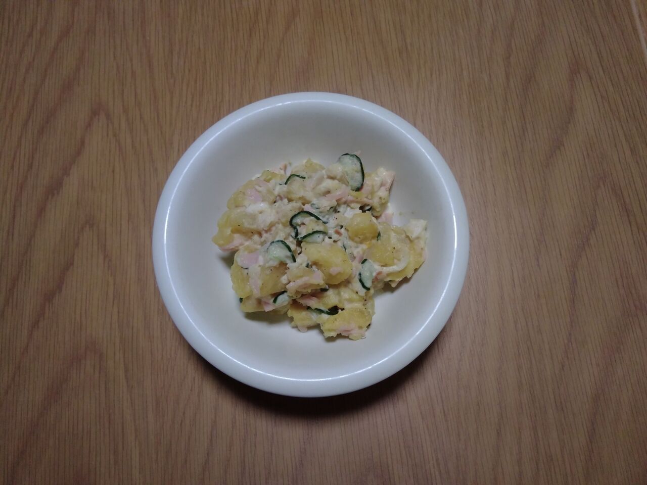 貰ったサツマイモが、なかなか減らないので、ポテサラを作りました。
