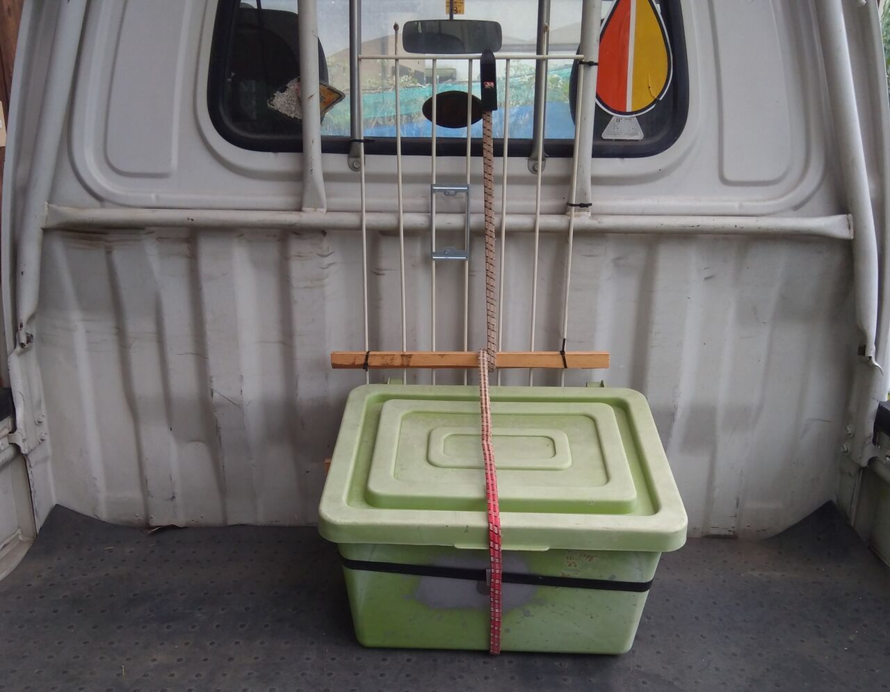 お弁当や荷物は、軽トラの荷台ボックスに入れました。