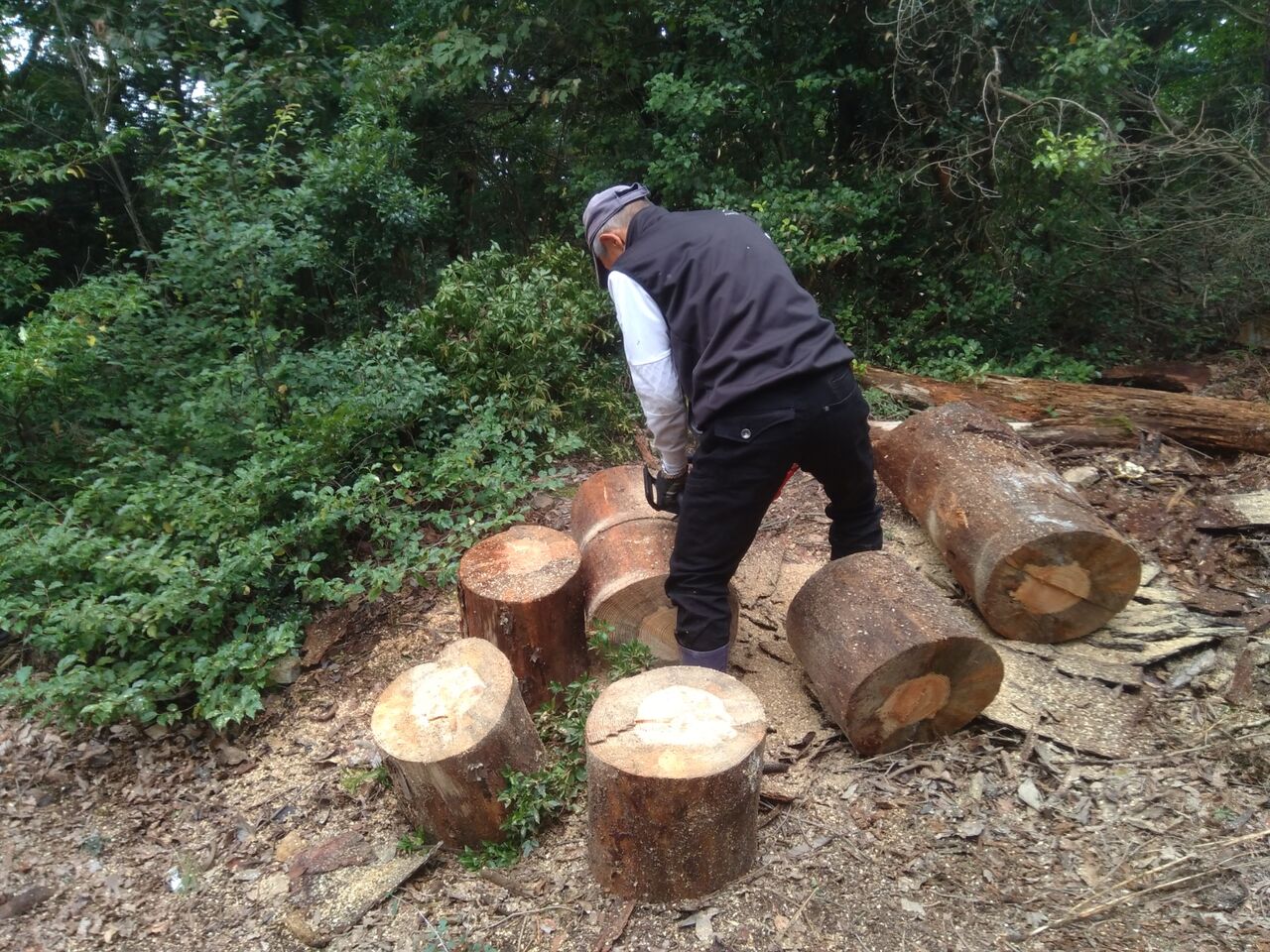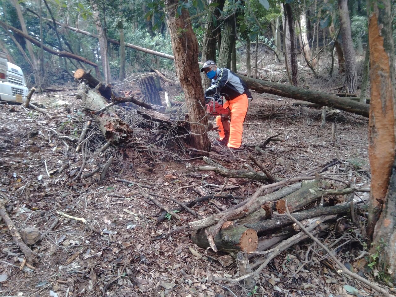 午後の作業は、雑木、立ち枯れ木の伐採です。