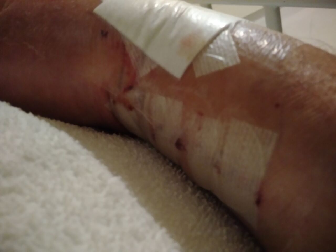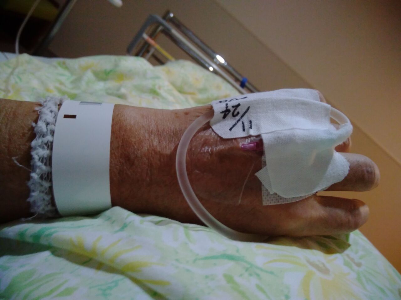 看護師さんが、点滴をしようとしたら液が漏れたので、点滴の場所が左腕から左手の甲に変更になりました。