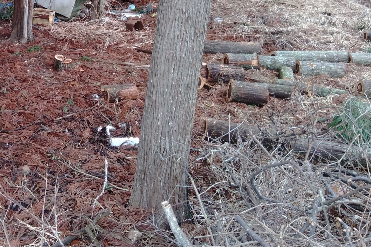 それでも、まだ雑木や杉の丸太が転がっています。