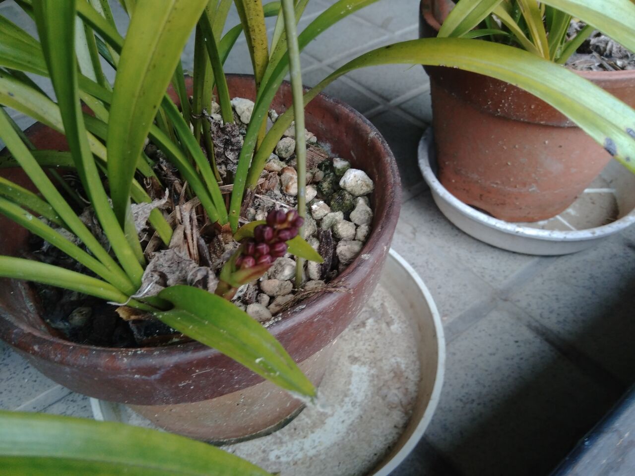 これは、室内のテラスで越冬させたキンリョウヘンの蕾です。