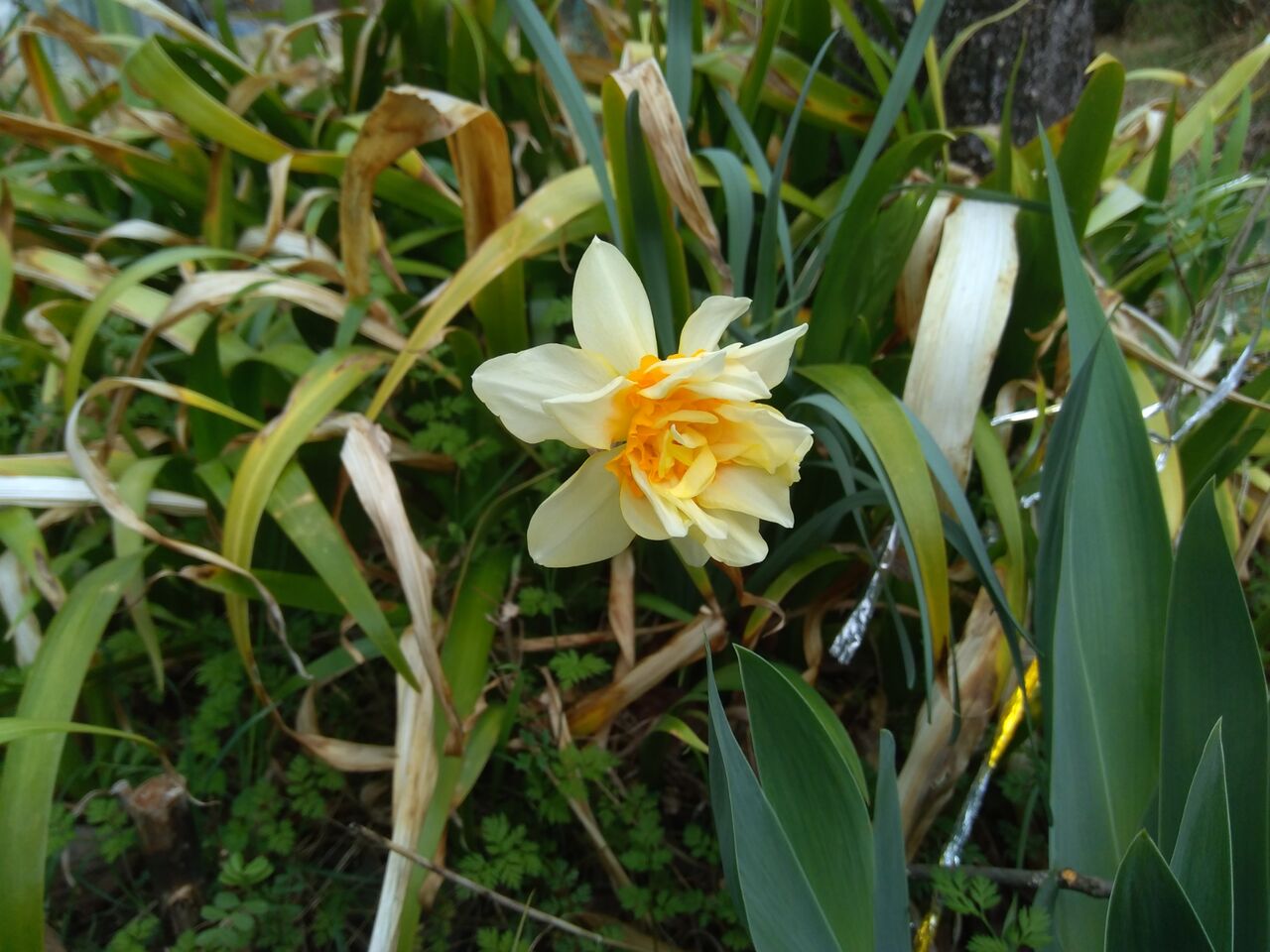 母屋の前の庭の八重咲きの水仙(スイセン)です。