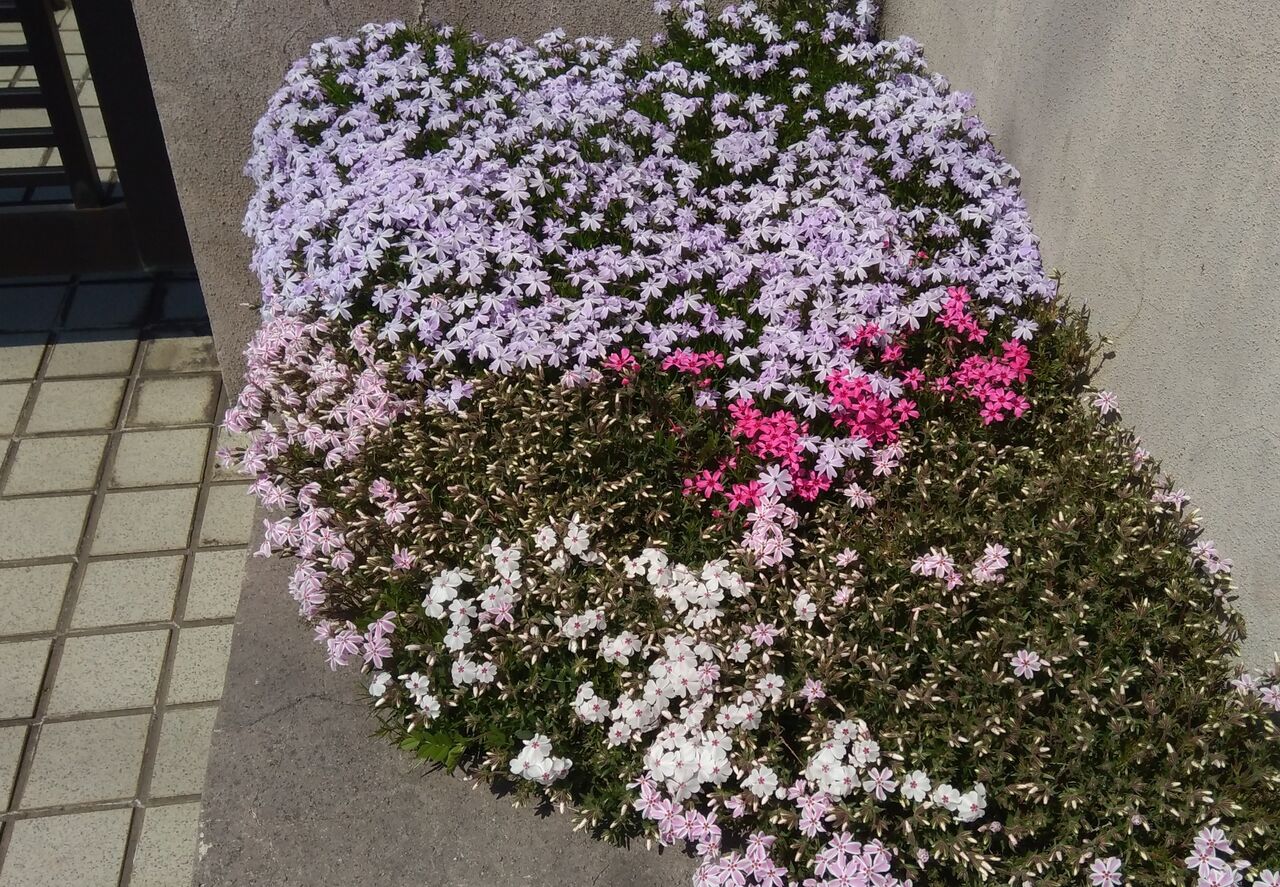 玄関の門扉脇の芝桜(シバザクラ)が咲いてきました。