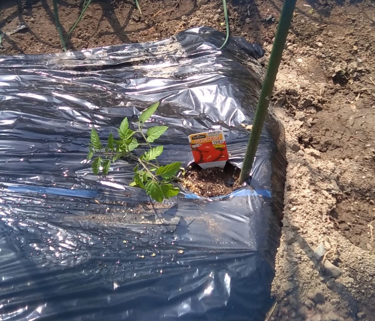 お袋の薬をお薬カレンダーにセットして、デイサービスの荷物をバッグに入れ、お袋の部屋のゴミの回収、観葉植物の水やりをしてから、畑に苗の定植をしました。
