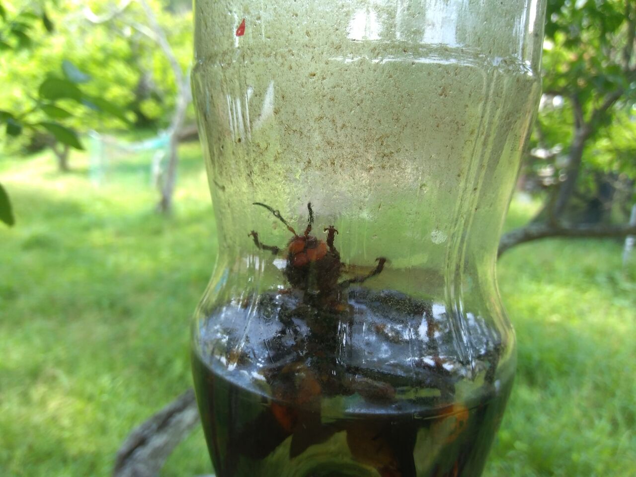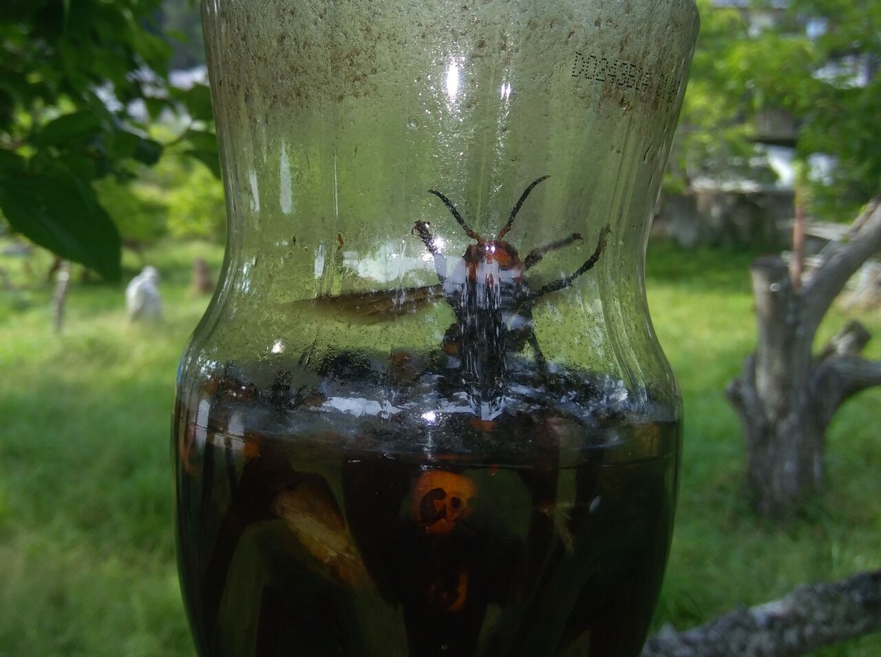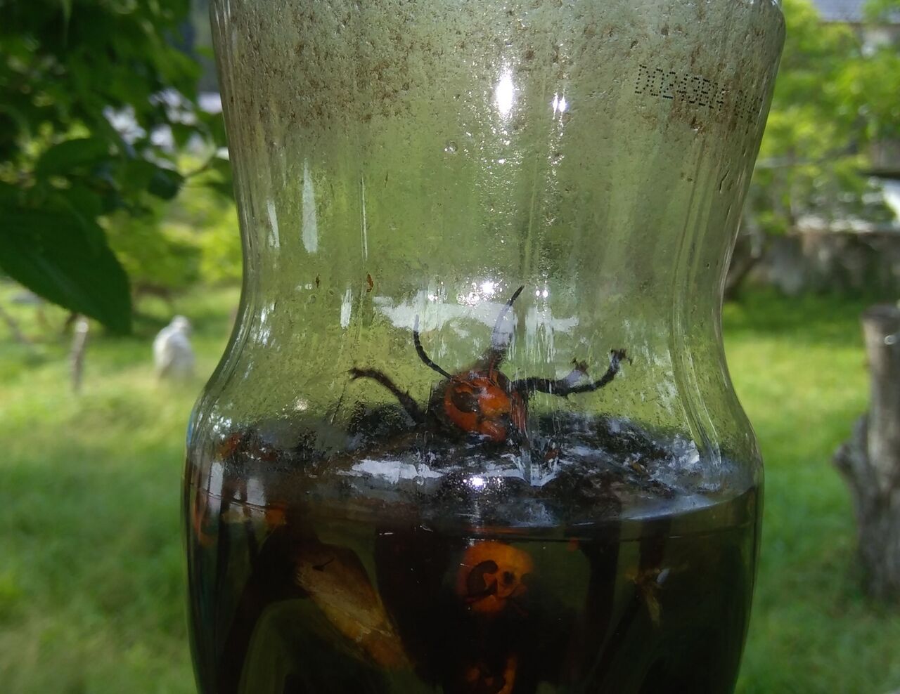 1週間前に設置したスズメバチのトラップに、昨日も何匹か入っていました。