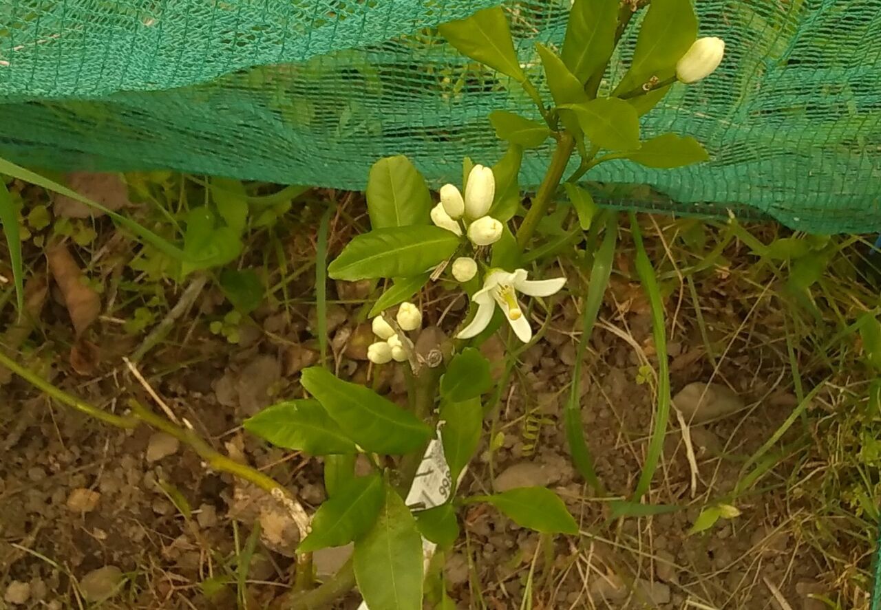 露地栽培のミカンに花が咲きました。